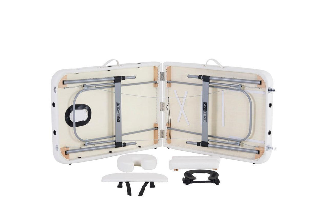 Masažni stol, sklopivi i prijenosni, aluminijski okvir, bijeli