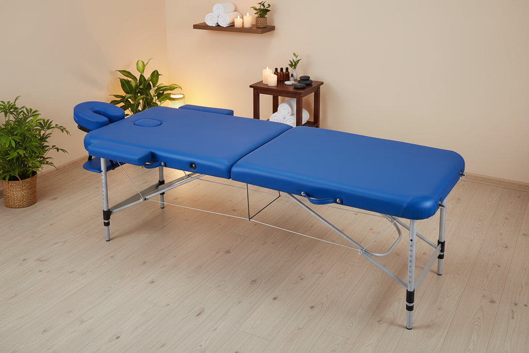 Masažni stol, sklopivi i prijenosni, aluminijski okvir, Plava