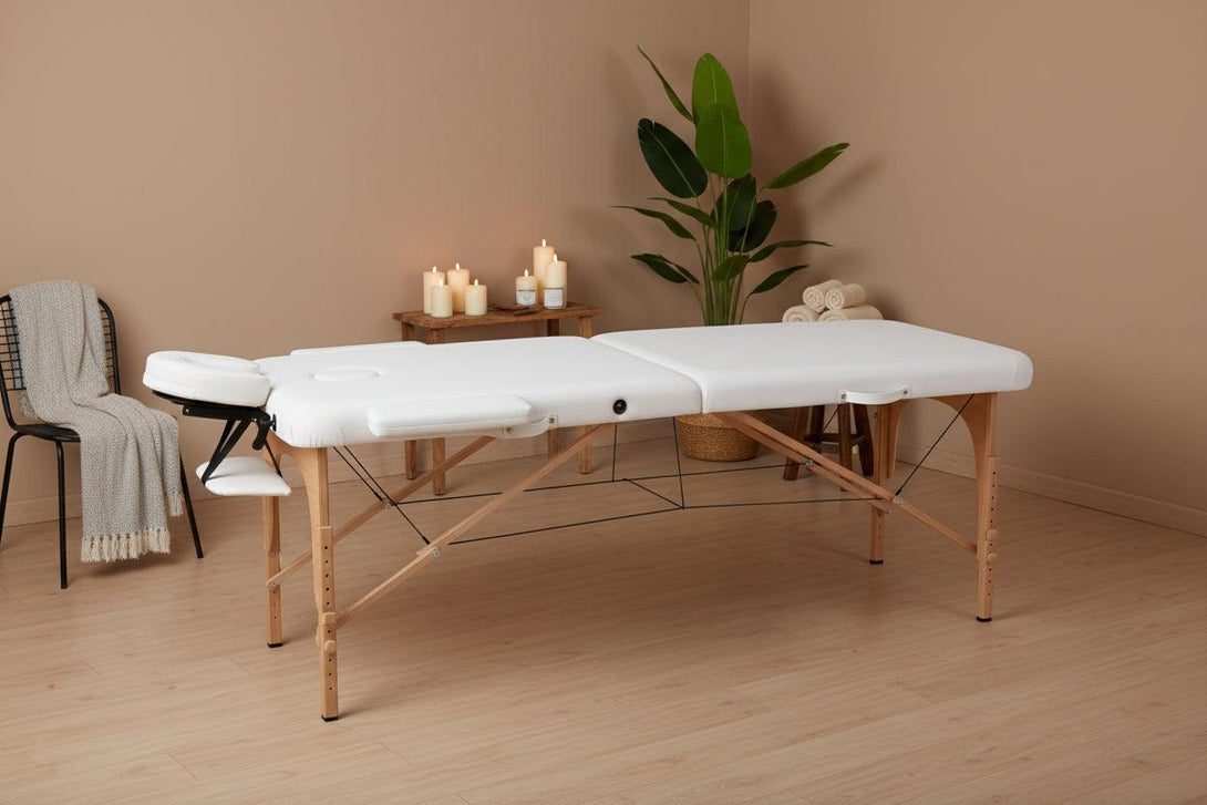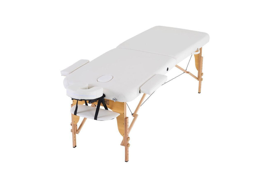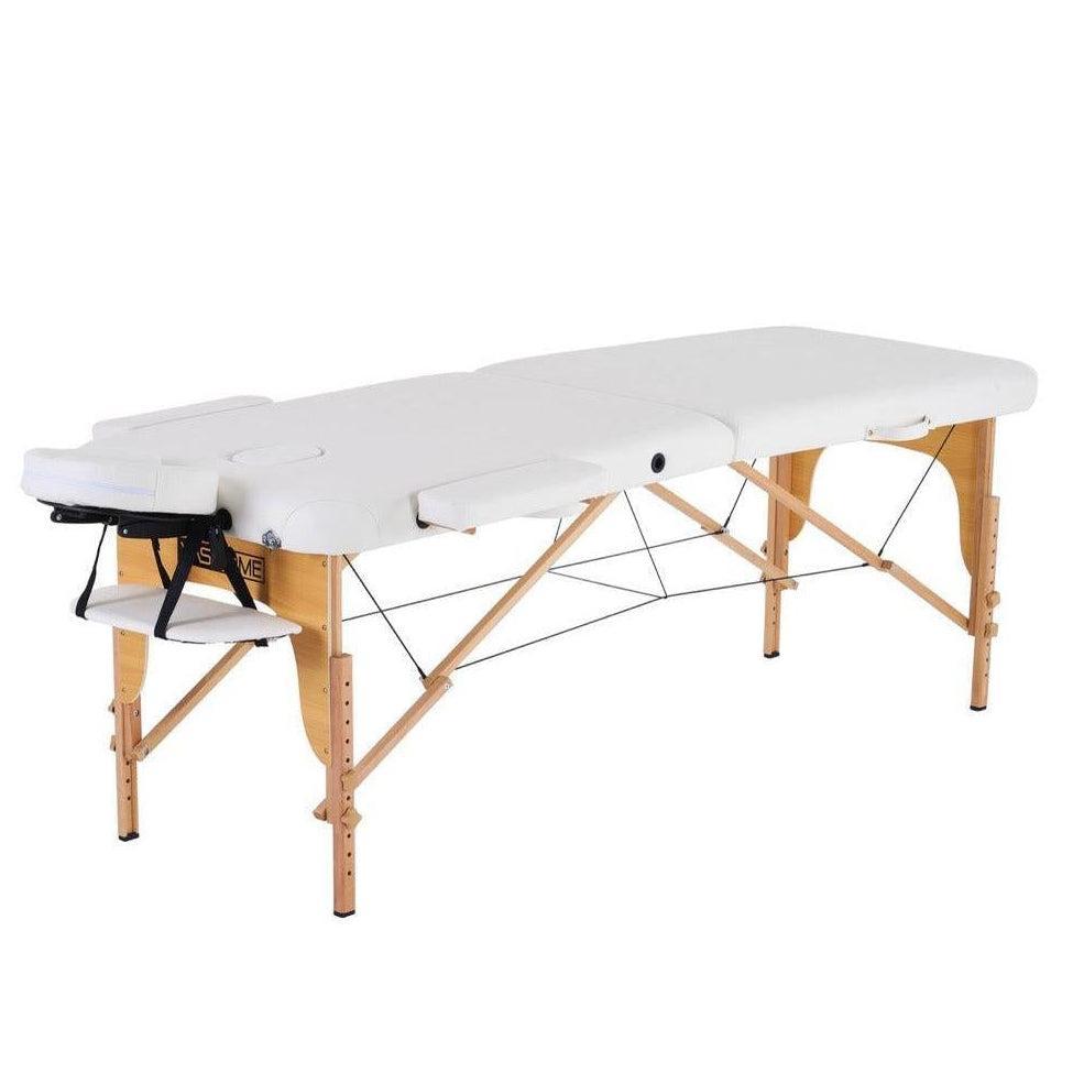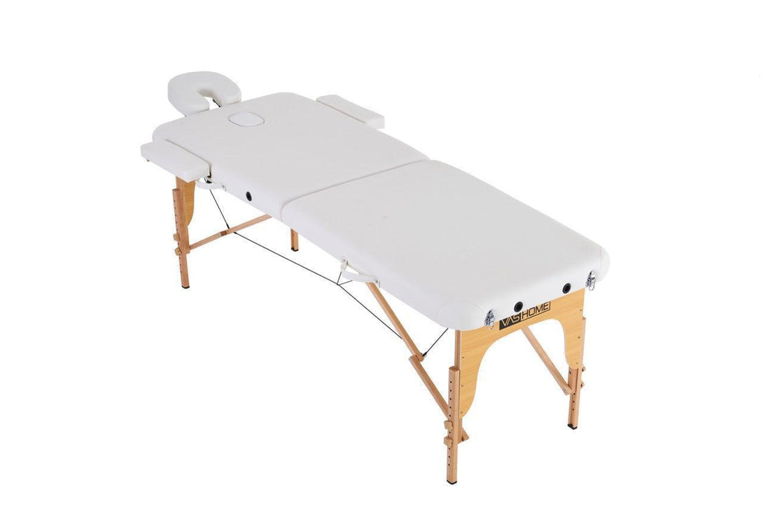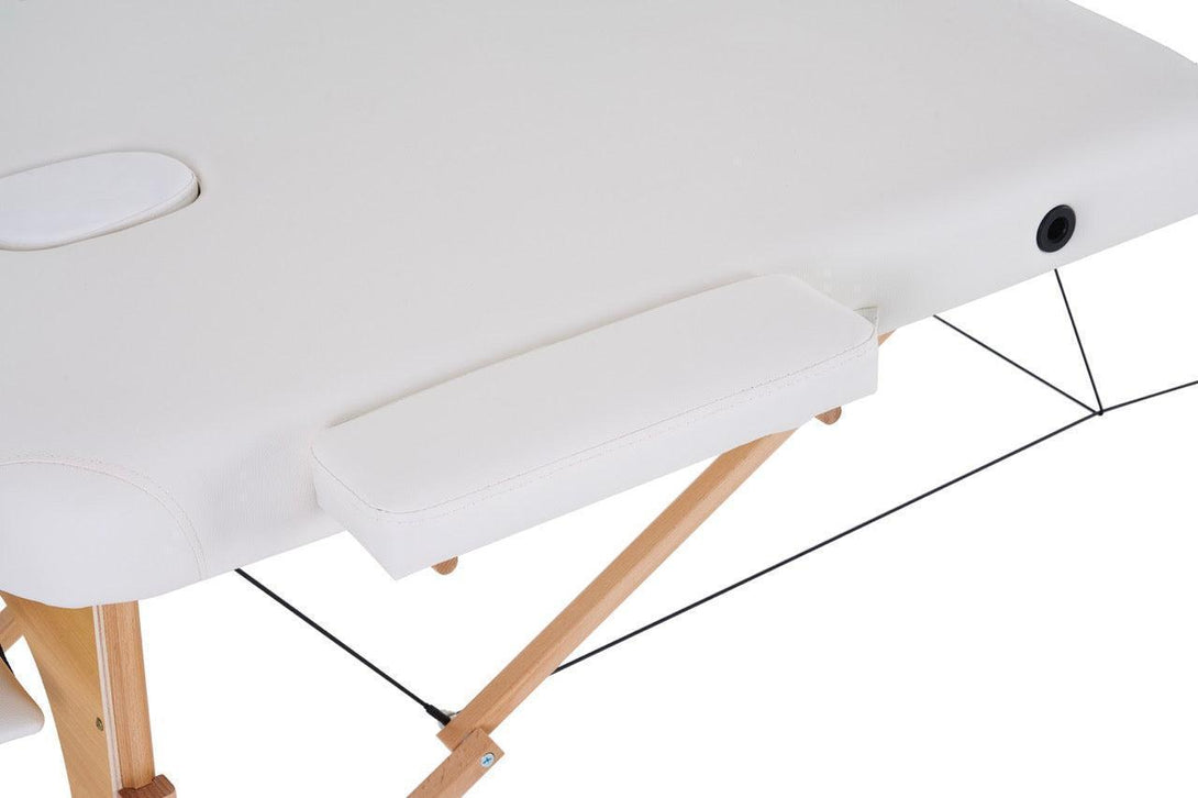 Masažni stol, sklopivi i prijenosni, drveni okvir, bijeli