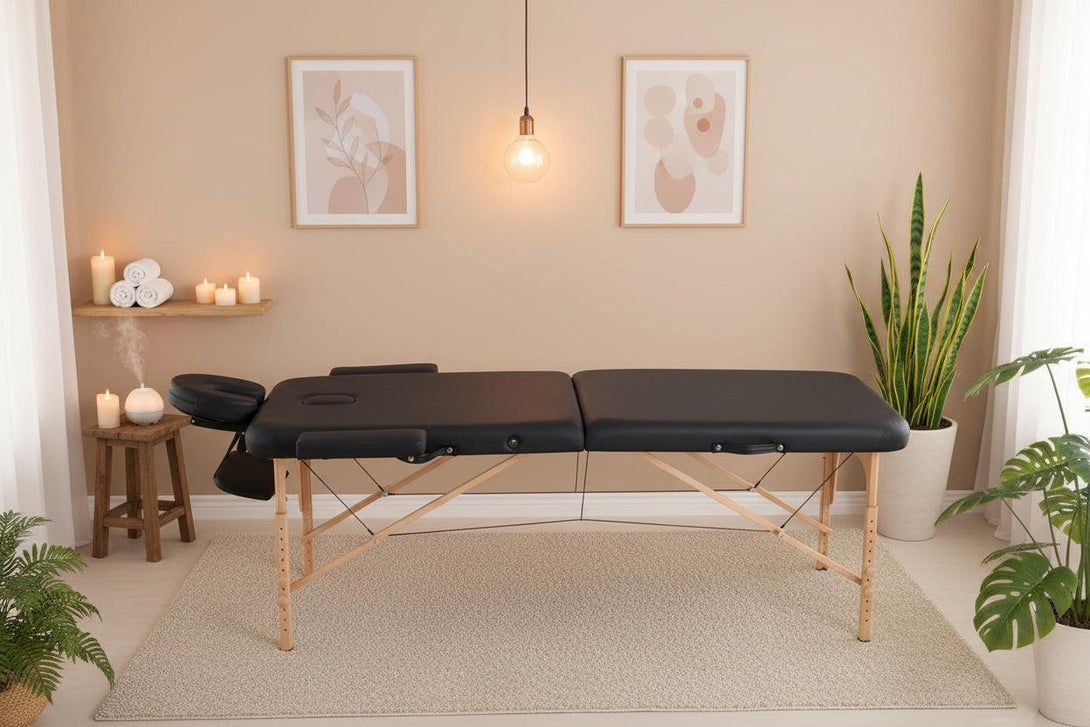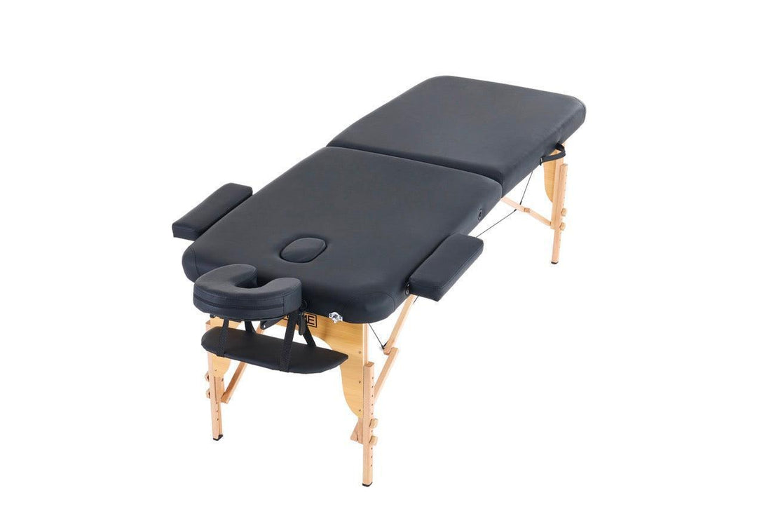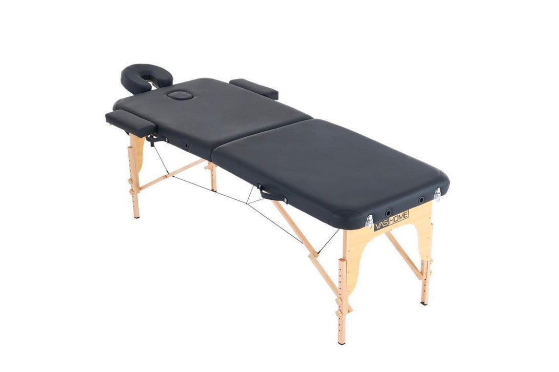 Masažni stol, sklopivi i prijenosni, drveni okvir, Crna