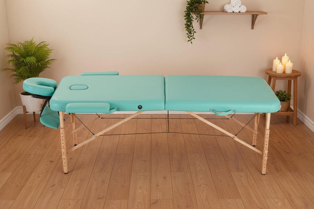 Masažni stol, sklopivi i prijenosni, drveni okvir, Zelena